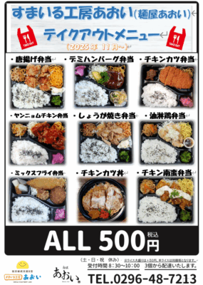 すまいる工房あおいでは引き続き、全品500円均一で販売しておりますので
